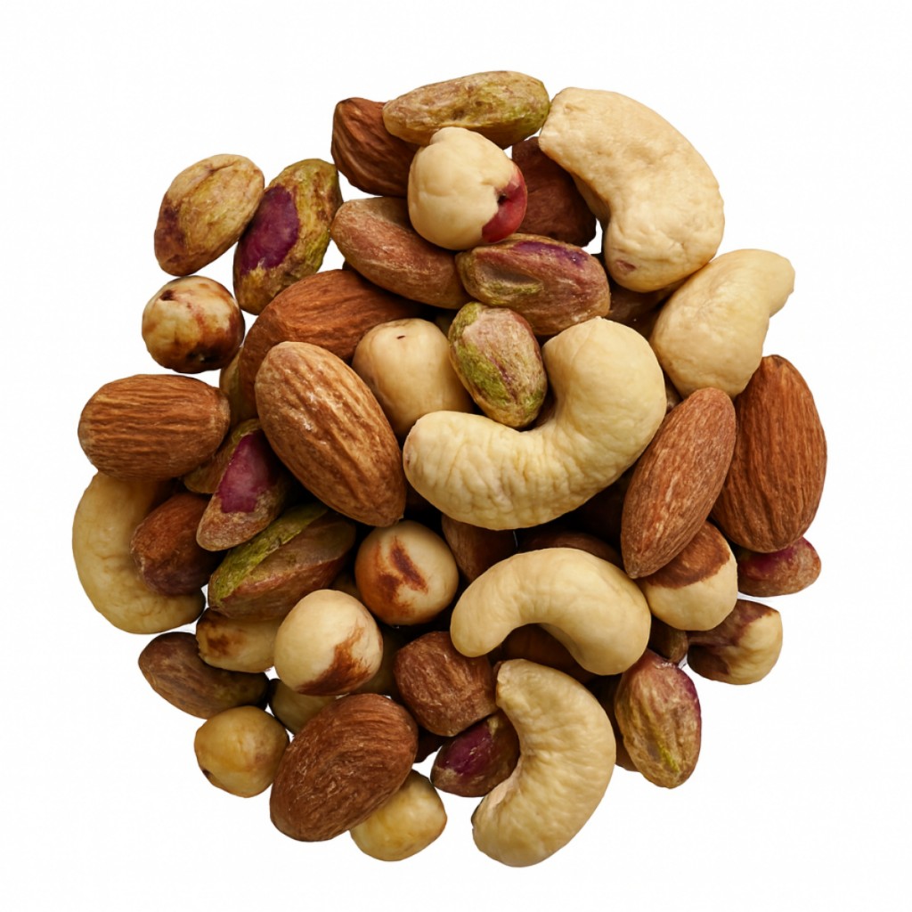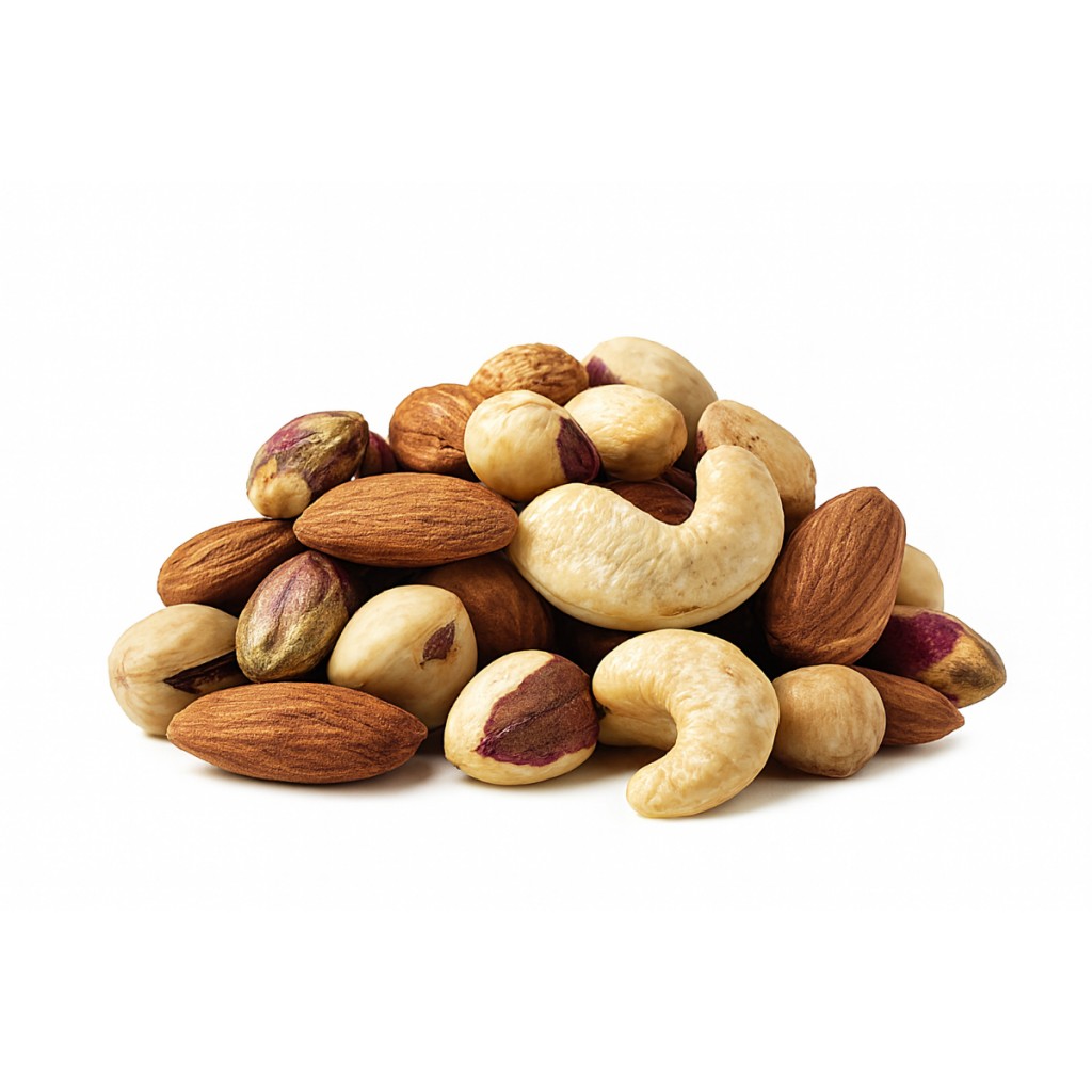 شامل بادام، پسته، فندق و بادامهندی، بدون نمک، بدون افزودنی و با حفظ بافت و خواص اصلی هر مغز. مناسب برای میانوعده، تغذیه ورزشی یا ترکیب با صبحانههای سالم. منبعی غنی از پروتئین، فیبر، ویتامینها